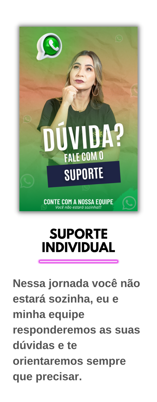 Neste curso você nunca estará sozinha, você sempre terá o meu suporte.